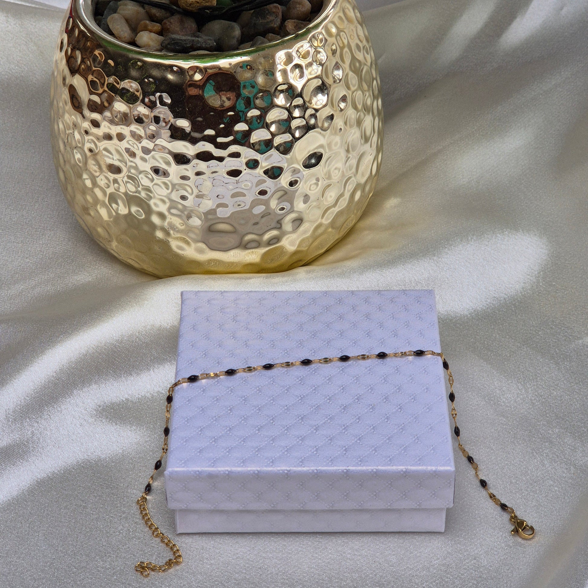 Feel Summer ready with this beautiful dainty anklet. Stainless Steel plated, you can choose from black or white for a bold statement look perfect for everyday wear.